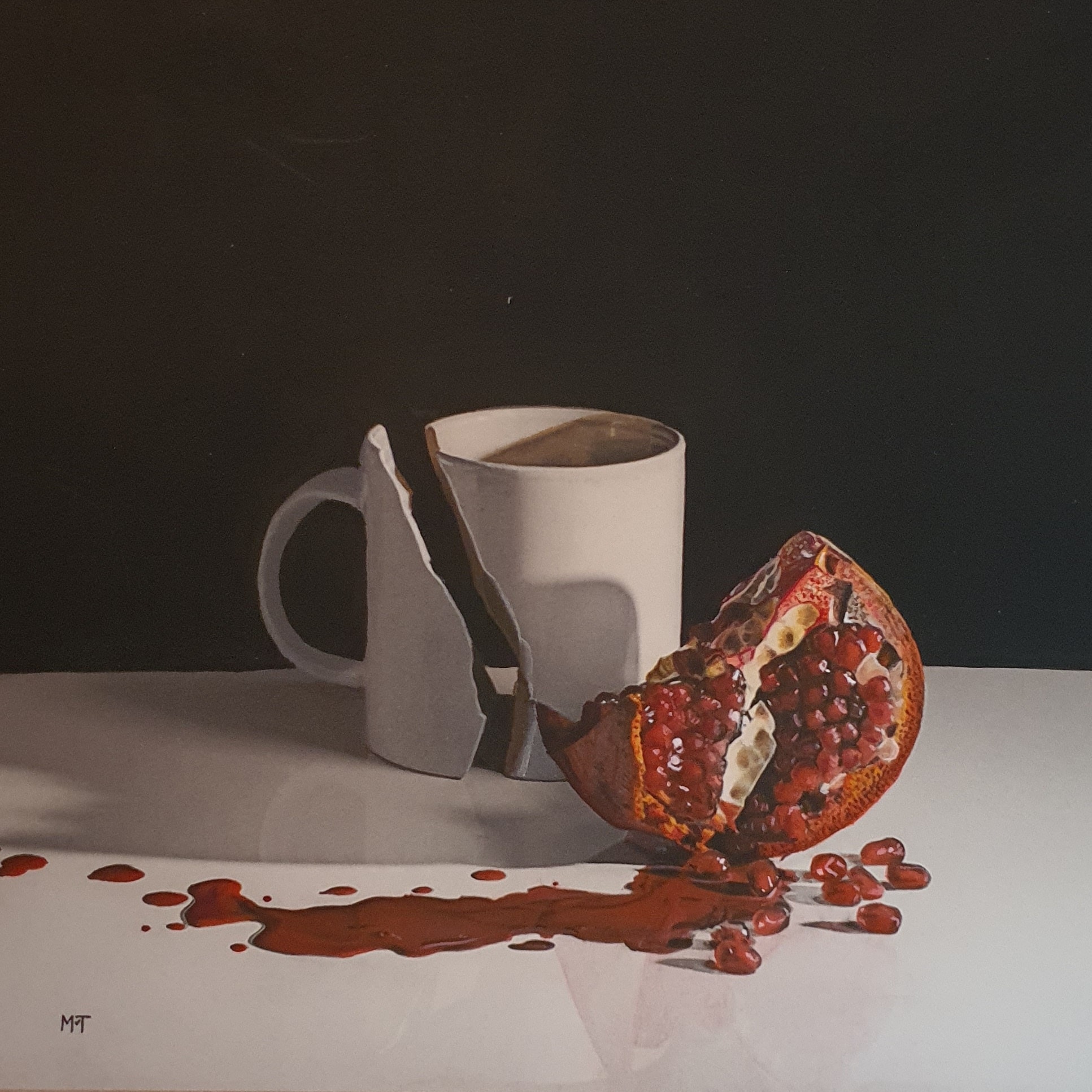 Broken mug with pomegranate
