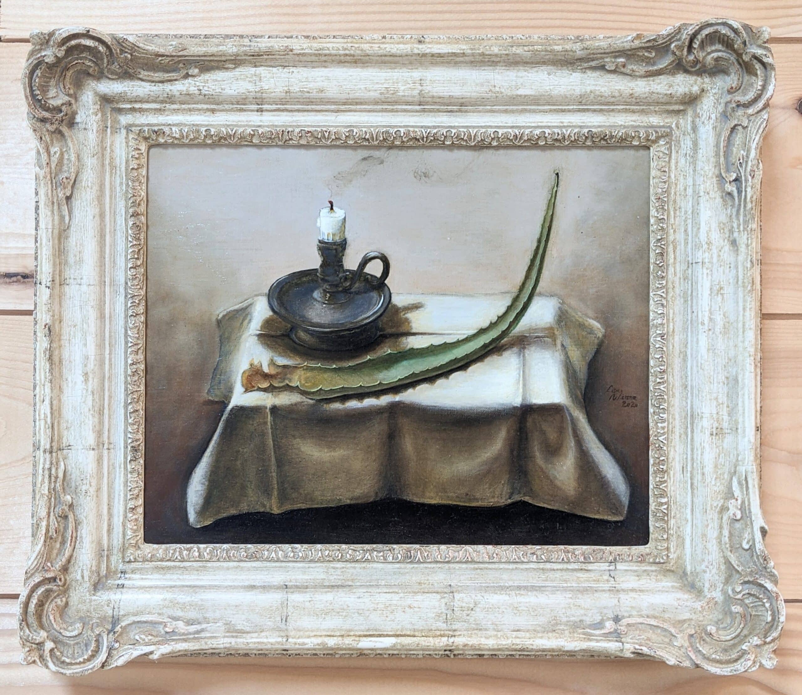 Stilleven met uitgeblazen kaars en aloë vera